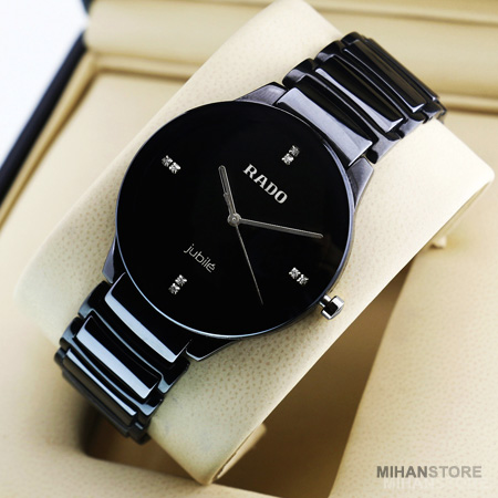 ساعت مچی Rado طرح DarkClassy دارای قاب و بند استیل با پوششی از استیل مشکی رنگ است که سرامیکهای مشکی درون بند آن قرار داده شده است. صفحه نمایش این ساعت به رنگ مشکی ساده ، نمایش آنالوگ، عقربه های نقره ای بوده و مارکرهای الماس به جای شماره های 3،6،9 و 12 جایگذاری شده است. قاب پشتی آن از جنس استیل و بسیار مستحکم است. همچنین قطر صفحه نمایش 3.8 سانتی متر می باشد. این ساعت با طراحی زیبا و شیک خود توانسته نظر مردم جهان را به خود جلب کند. ساعت Rado بسیار خوش ساخت و با کیفیت تولید شده است، کیفیتی که با بستن ساعت روی دستتان متوجه آن خواهید شد.