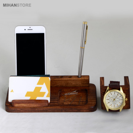 برای انجام امور روزانه و کارهای محول شده باید لوازم مورد نیاز هم در دسترس باشد ، لوازمی مثل خودکار، موبایل، سوزن و سنجاق و .... در عین حال مرتب نگه داشتن آنها به تنهایی کار دشواری است و اغلب بدون داشتن یک ست لوازم اداری مناسب، شاید زمان زیادی از شما بگیرد. ست رومیزی چوبی جا موبایلی و ساعت یکی از آنهاست، از ویژگی های این محصول سبک بودن، مقاومت و دوام بالا و طراحی مدرن و به روزی که دارد می توان اشاره کرد. از دیگر ویژگی های ست رومیزی چوبی دارای جایگاه ساعت، موبایل، انواع کارت، خودکار و مداد و جای سوزن و سنجاق می باشد. این ست رومیزی کاربردی مناسب برای افرادی است که میزشان فضای قرار دادن وسایل را ندارند.
