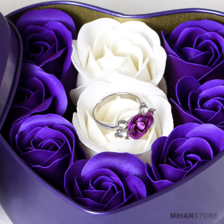- محتویات داخل جعبه: انگشتر و گل های رز عطری