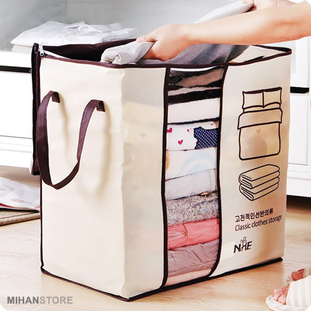 کاور نگه دارنده پتو و لباس ، محصولی با طراحی نوین ، زیبا و در عین حال بسیار کاربردی تر از نمونه های مشابه ساده می باشد. این بقچه از جنس پارچه و به صورت مکعبی شکل طراحی و تولید شده است. مکعبی بودن بقچه باعث به وجود آمدن محفظه ای آماده برای نگهداری لوازم شده، بنابراین به سادگی می توان در صورت نیاز آن را باز و مورد استفاده قرار داد بدون نیاز به انجام هر کار اضافه دیگری. درب بقچه در قسمت بالای آن قرار داده شده که با استفاده از یک زیپ به آسانی باز و بسته می شود. با این تفاصیل می توان بقچه لباس پارچه ای را محصولی کاربردی با امکان استفاده سریع و آسان در صورت نیاز دانست. انعطاف پذیری بقچه به دلیل جنس پارچه ای که محصول دارد، امکان نگهداری از آن در کمترین فضای ممکن به صورت تاشده در صورت عدم نیاز را به شما خواهد داد و در دو طرف محفظه نیز دستگیره هایی قرار داده شده که قابلیت حمل و جابه جایی آسان بقچه را فراهم می نماید. در جلوی محصول نیز بخشی از دیواره با استفاده از پلاستیک شفاف پوشش داده شده تا بتوان محتویات داخل بقچه را بدون نیاز به باز کردن و تخلیه آن مشاهده و از موجودی درونش مطلع شد. استفاده از باکس لباس زیپ دار امکان نگهداری پتو، لباس ها، رخت خواب های کوچک، پارچه ها، لوازم و وسایل مختلف در فضایی اندک داخل کمد و اتاق را برای شما محیا می کند.