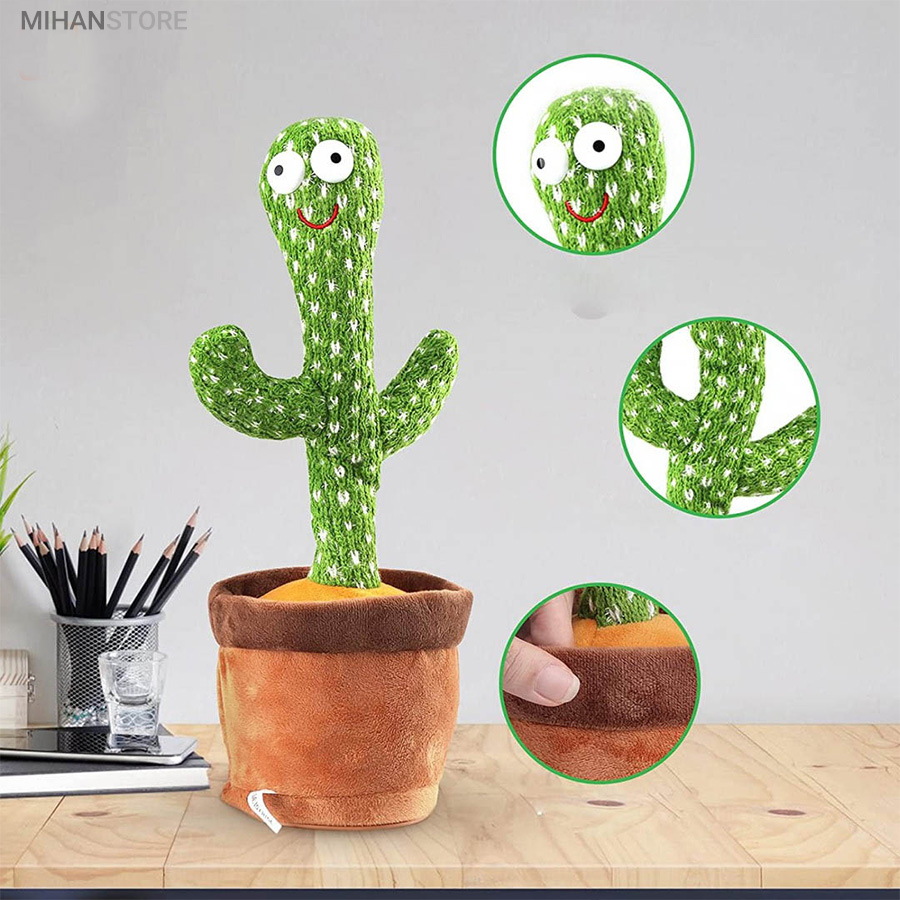 عروسک کاکتوس رقصنده سخنگو شارژی یک اسباب بازی جدید از جنس مخمل است. این عروسک که به شکل گلدان کاکتوس است. طول آن 32 سانتی متر و عرض پایه گلدان 12 سانتی متر است. روکش آن از مخمل و داخل آن با مواد نرم پنبه ای پر شده است. به این نوع اسباب بازی، plush toy گفته می شود. رنگ آن نیز سبز است. کاکتوس سخنگو زیباست و بچه ها آن را دوست دارند. چشمان درشت دارد، جنس آن با کیفیت، نرم و فاقد هر گونه حساسیت است. این عروسک از نوع شارژی که با استفاده از کابل شارژ USB شارژ می شود. بدیهی است که نوع شارژی آن مقرون به صرفه تر است، چرا که نیازی به خرید باتری نخواهید داشت. این عروسک قابلیت ضبط و پخش صدا و در واقع تقلید صدا به مدت 15 ثانیه را دارد. می توانید برای این عروسک لباس دلخواه خود را طراحی کنید و قیافه آن را مطابق با سلیقه خود درست کنید.
