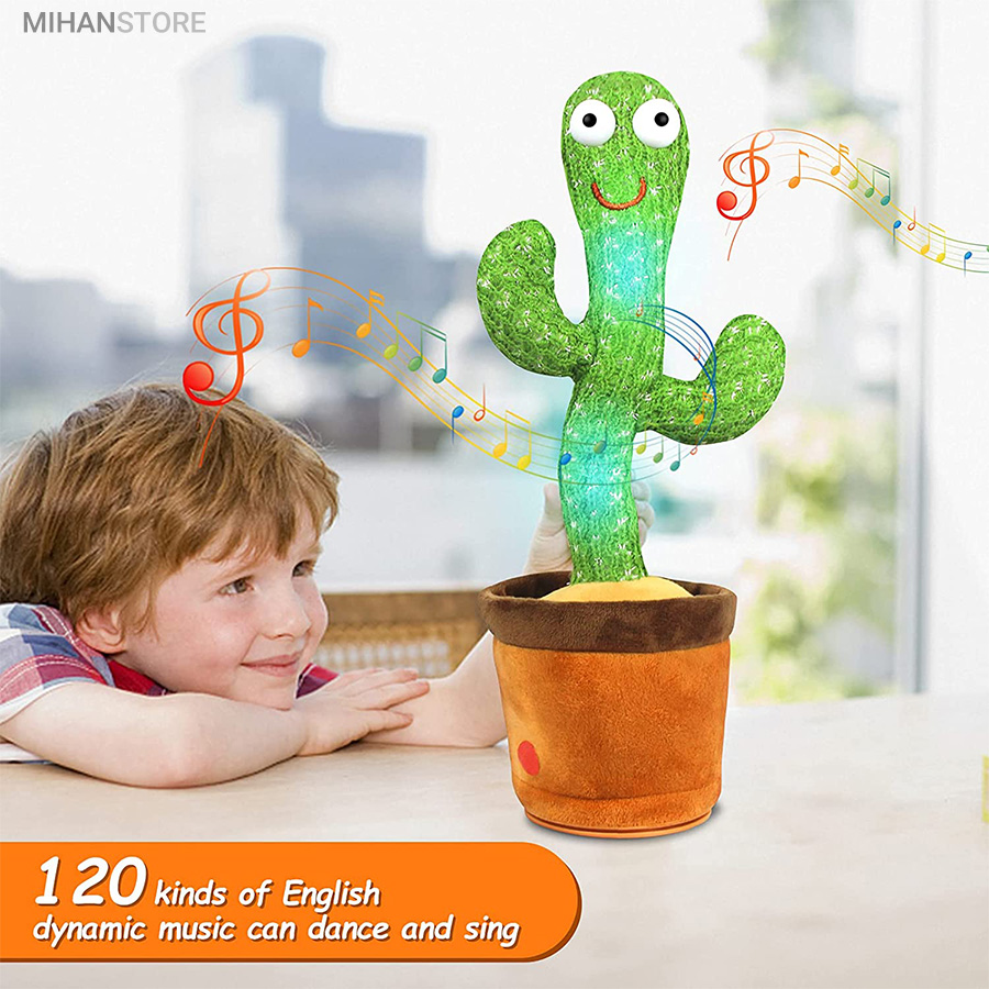 اسباب بازی مخمل زیبا و سرگرم کننده به شکل کاکتوس می تواند برقصد، آواز بخواند، حرکت موزون انجام دهد و صدای شما را تقلید کند. آن را شارژ کنید و و برای چند ساعت خود، اطرافیان و کودک خود را شاد کنید.  کافی است که کابل شارژ USB که در داخل جعبه بسته بندی این محصول قرار دارد را از جعبه در آوردید و از یک طرف به USB و از طرف دیگر به قسمت مخصوص در زیر عروسک (گلدان) متصل کنید. با اتصال کابل شارژ به آداپتور، چراغ قرمز رنگ داخل گلدان روشن می شود و وقتی که عروسک فول شارژ شد، به رنگ سبز تبدیل می شود.