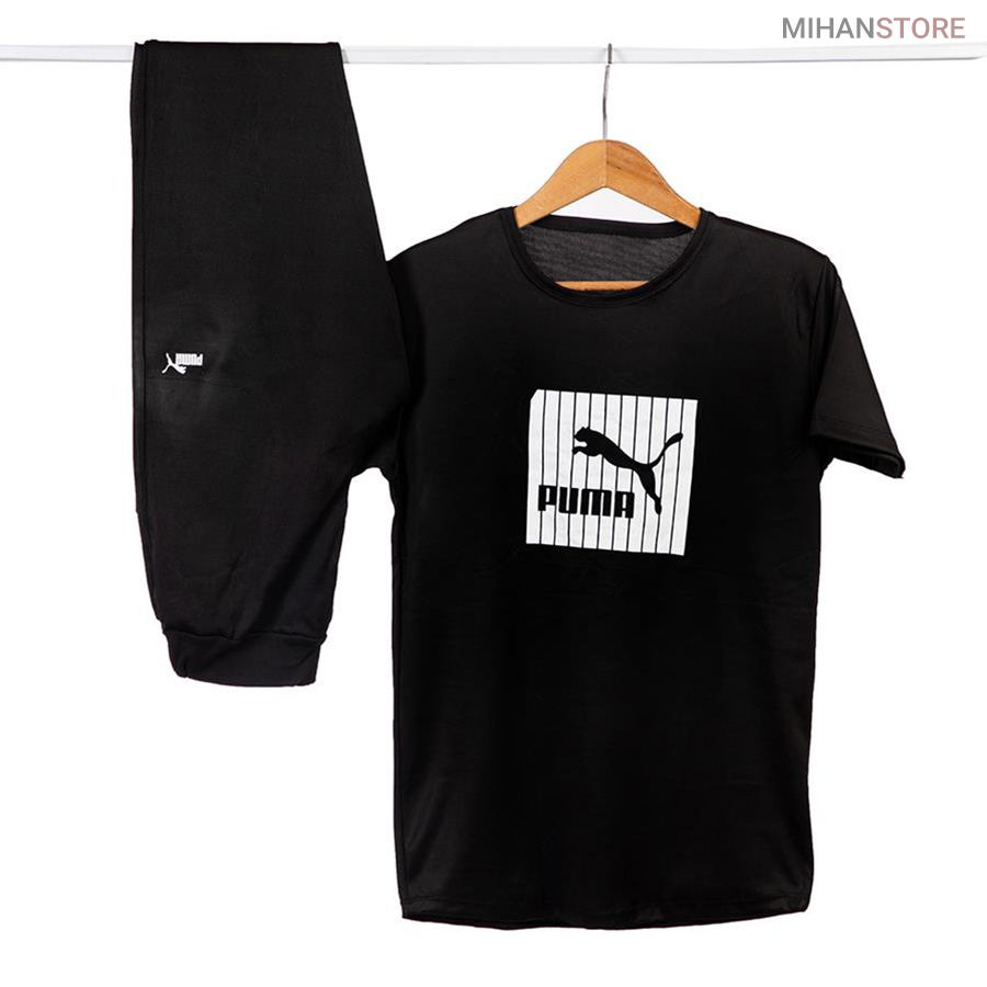 های پرطرفدار و کارامد بین خانم ها و آقایان هست. ست تی شرت و شلوار PUMA دارای جنس مکلون می باشد که مدل تی شرت آستین کوتاه و دارای چاپ بسیار شیک است. مزايای ست تیشرت و شلوار PUMA راحتی, جنس نرم  و دوخت تميز و طراحی زیبا با رنگ مشکی جذاب است و سايزبندي آن فري سايز است و مناسب براي باشگاه, خانه و مهمانی و … می