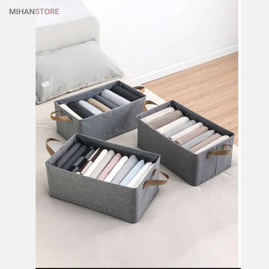 باکس لباس و شلوار داخل کمد یک جعبه پارچه ای بسیار مقاوم اما سبک و کم حجم به شکل مستطیل با ابعاد طول 40، عرض 25 و ارتفاع 24 سانتی‌متر می‌باشد که دارای اسکلت داخلی جمع شونده است که علاوه بر حفظ شکل ظاهری باکس، استحکام بیشتری نیز ایجاد می‌نماید.  باکس لباس و شلوار داخل کمد با ارتفاع مناسبی که حین باز کردن آن وجود دارد می‌توان حجم قابل توجهی از لباس و پیراهن و شلوار را در داخل خود جای دهد.  در صورت عدم استفاده از این باکس لباس اسکلت دار هیچ محدودیتی بابت جمع کردن و قرار دادن آن در جای مناسب نخواهید داشت و به گونه ای است که به راحتی تا می‌شود و می‌توانید آن را در کشو و قفسه بگذارید.  همچنین جنس پارچه ای ضخیم با قابل شستشو، مقاومت در برابر چروک، ساییدگی، پوسیدگی و تغییر رنگ از دیگر محسنات این باکس است. جنس این کالا پارچه برزنتی درجه یک ضخیم می باشد.