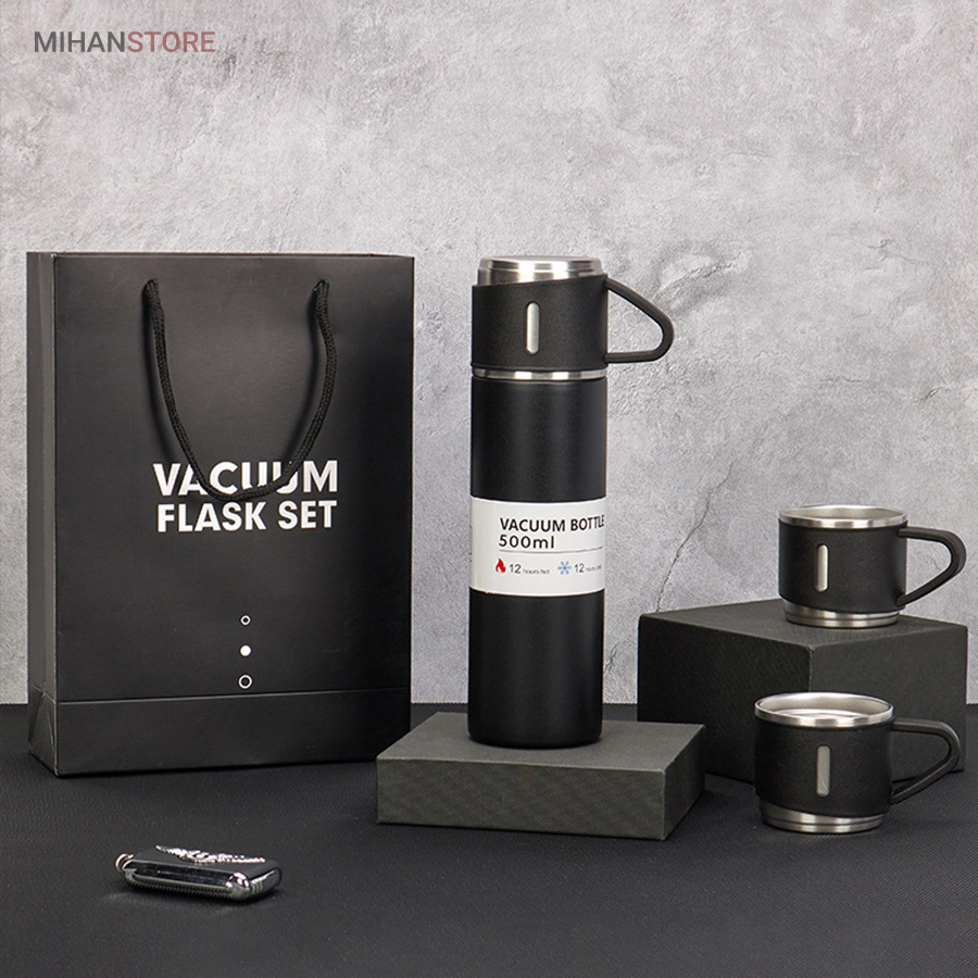 تا حالا به این فکر کردید که یه کادویی بخرید که هم جعبه کادویی داشته باشه هم ساک؟ خب پس بیاین یه فلاسک کادویی بهتون معرفی کنیم که جعبه داره و بهترین هدیه است!ست فلاسک و لیوان هدیه مناسب برای کوهنوردی و طبیعت گردی و مسافرت و رانندگی می باشد. این محصول دارای رنگ بندی در 5 رنگ می باشد . محتویات داخل ست فلاسک و لیوان استیل نیم لیتری، یک عدد فلاسک و سه عدد فنجان می باشد. دو عدد فنجان داخل جعبه و همچنین درب فلاسک که یک فنجان اضافه است. ست فلاسک و لیوان هدیه به همراه خود یک جعبه کادویی بسیار زیبا دارد. این ست با داشتن جعبه لاکچری میتواند گزینهی خوبی برای کادوی تولد یا مناسبتی به دوستان و آشنایان باشد.