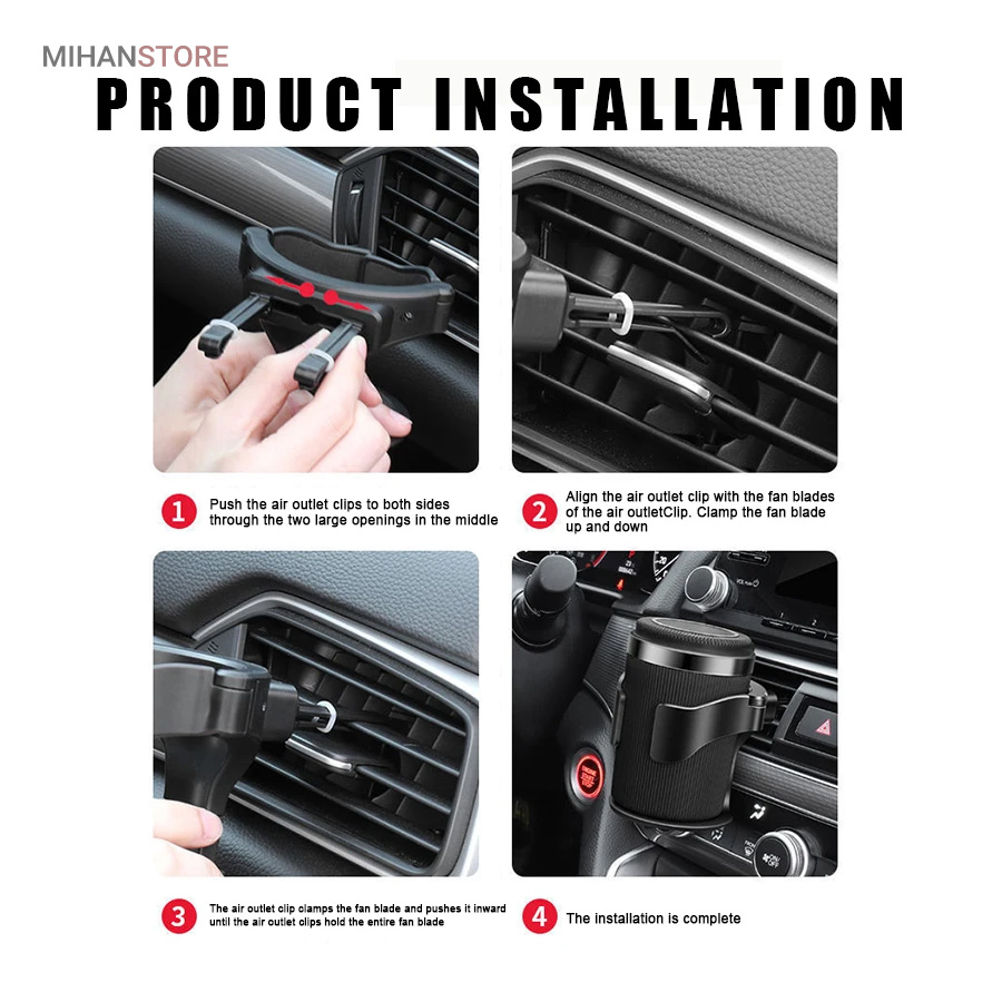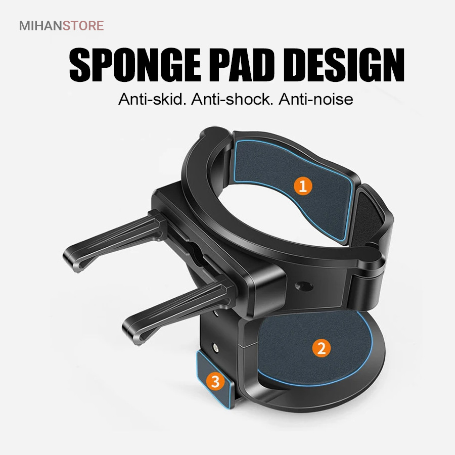 جا لیوانی از مواد کاملاً جدید ABS و بالشتک ساخته شده است تا صدا و لرزش را در حین رانندگی کاهش دهد. طول دسته پایه را می توان با توجه به تمایل داشبورد تنظیم کرد. اطمینان حاصل کنید که نگهدارنده را می توان صاف و محکم قرار داد. این محصول مناسب برای خودروهایی که شیارهای تهویه مطبوع آنها افقی می باشد قابل استفاده است.