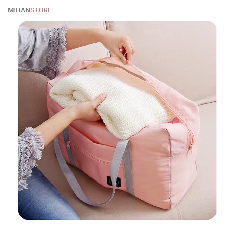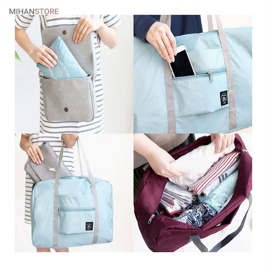 ساک تاشو مسافرتی اندازه در حالت باز شده : 48*32*16 سانتی متر ساخته شده از پارچه نایلونی بادوام سبک مقاوم در برابر سایش و پارگی آب گریزی عالی دارد و حتی اگر در باران یا آب خیس شود به راحتی با یک دستمال پاک می شود و آب به وسیله های شما نفوظ نمیکند ، بنابراین می توانید وسایل خود را بدون خیس شدن حمل کنید. ظرفیت بزرگ: طراحی و ظرفیت استفاده آسان آن را برای استفاده های مختلف مانند مسافرت، سفرهای کاری و بخش خانه مناسب می کند. همچنین برای نگهداری لباس ها و اقلام کوچکی که خارج از فصل هستند مفید است. و می توانید آن را در هواپیما ببرید (Carry On) با یک حلقه میله حمل، می توانید آن را بالای چمدان خود حمل کنید و می توانید در مسافرت یا سفرهای کاری از کیف حمل استفاده کنید. علاوه بر این، هنگامی که از آن استفاده نمی شود، می توان آن را به اندازه جمع و جور تا کرد و برای یک کیف سوغاتی برای سفر یا سفر کاری عالی است.