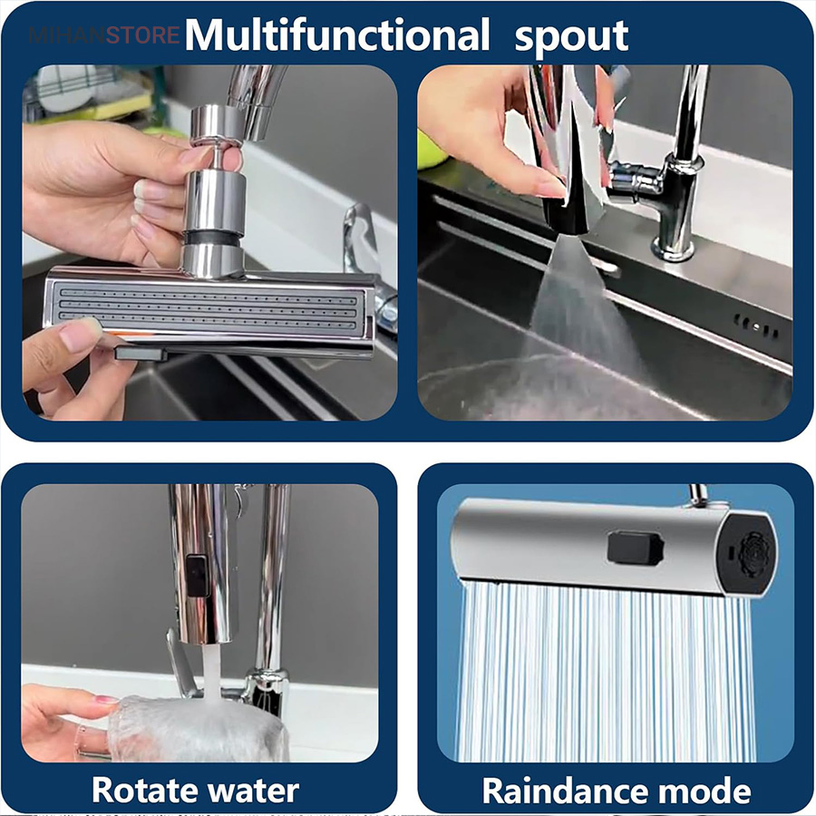 سرشیر آبشاری چند حالته، از جنس باکیفیت و ضد زنگ ساخته شده است و با تمامی شیرآلات آشپزخانه سازگار است. دکمه تعویض حالت پخش آب، نرم و راحت است و به راحتی می توانید حالت پخش آب را متناسب با نیاز خود تنظیم کنید.