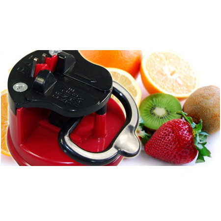 کار کردن با این وسیله بسیار راحت و سریع می باشد، کافی است آن را روی یک سطح کاملا افقی قرار دهید سپس دستگیره آن را گرفته و بلند کنید و تا عقب ببرید با این کار کف این دستگاه محکم به روی آن سطح می چسبد. حال چاقوی خود را از دسته گرفته و بین دو تیغه دستگاه چند بار بکشید، کار تمام است و می توانید از چاقوی تیز شده خود لذت ببرید.