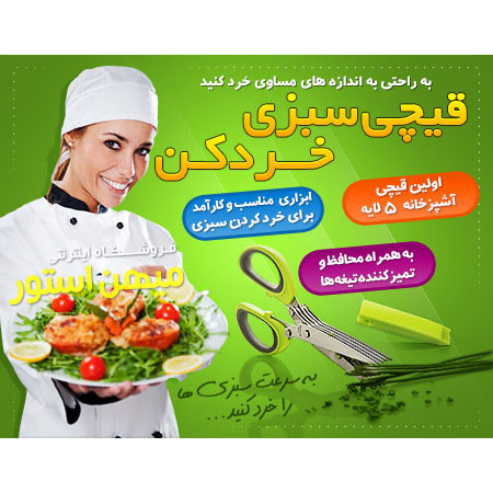 اين قیچی عجيب و غريب شامل 10 تيغه تيز است كه اين امكان را براي شما فراهم مي كند تا سبزيجات، کاهو، پیاز و ... را با سرعت بالا و در تکه های مساوی برش داده و خرد كنيد. جنس دسته به نوعی طراحی شده است که مانع از سر خردن قیچی می شود و همچنین جنس تیغه های آن استیل بوده و فوق العاده با کیفیت می باشد. یکی از مشکلات این قیچی تمیز کردن بین تیغه های آن می باشد که در طراحی جدید این محصول این مشکل هم حل شده است و در کنار قیچی یک قطعه محافظ و تمیز کننده قرار داده شده است که این تمیز کننده با استفاده از شیار هایی که دارد بین تیغه ها قرار می گیرد و سطح تیغه ها را تمیز می کند.