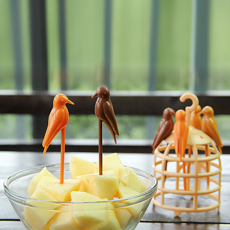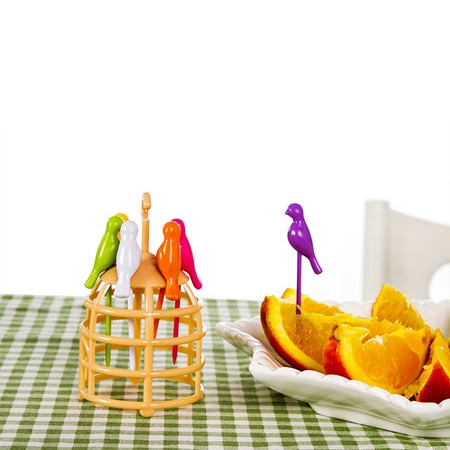 چنگال میوه خوری طرح قفس با طراحی جالب و منحصر به فرد شامل یک قفس پرندگان به عنوان استند و پایه، و 6 چنگال با طرح پرنده های زیبا می باشد که علاوه بر زیبایی ضیافت های شما بسیار اشتها آور نیز می باشد. این محصول از کیفیت بسیار بالایی برخوردار می باشد و در بسته بندی اورجینال و شکیل عرضه شده است.