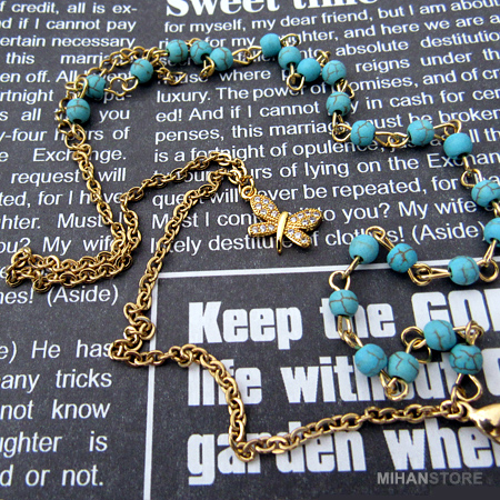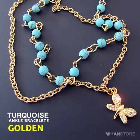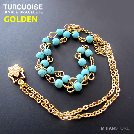 امروزه پوشیدن اکسسوری های کوچک و جذاب در کنار لباس ها استایل و تفاوت خاصی برای شما ایجاد می نماید. انواع مختلف لباس، طرح تکراری به خود گرفته و تنها با اضافه کردن زیورآلات است که می توان در جمع دوستان متفاوت جلوه کرد. پابند فیروزه در دو رنگ طلایی و نقره ای و سنگ های فیروزه ای همان چیزی است که شما برای درخشیدن در میان دوستان خود نیاز دارید. طراحی این پابند 2 لاین بوده (2 دور روی مچ پا می پیچد) و به این سبب جلوه ی بیشتری نسبت به بقیه پابند ها داشته و رنگ سبز فیروزه ای سنگ های آن با انواع لباس هماهنگی خاص دارد و همچنین آویز زیبا و درخشان این پابند زیبایی این محصول را دوچندان کرده است. شما می توانید بسته به طراحی رنگ لباس خود رنگ زنجیر نقره ای و یا طلایی این محصول را در سبد خرید انتخاب نمایید.