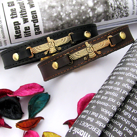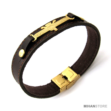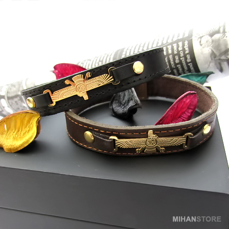 دستبند چرمی طرح فروهر با دو رنگ قهوهای و مشکی و پلاک نازک طلایی فروهر نمونهای از زیورهای ساده و در عین حال پرطرفدار از جانب آقایان و خانوم ها است که با اکثر رنگهای لباس همخوانی داشته و در عین حال متفاوت دیده میشود. این دستبندها مناسب ترین هدیه برای جوانان شیک پوش است.